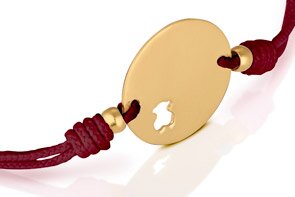 Браслет выполнен из серебра, покрытого желтым золотом и шнурка из полиэстера в трех цветовых вариациях (красный, черный, коричневый). Акция продлится до 30 ноября 2013 г.