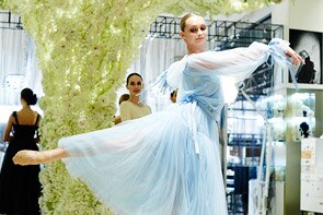 Инсталляция из цветов была представлена Babaeva&Nguen. Бьюти - партнёр салон красоты Barber Z. Образы балерин дополнили украшения Magia di Gamma.
