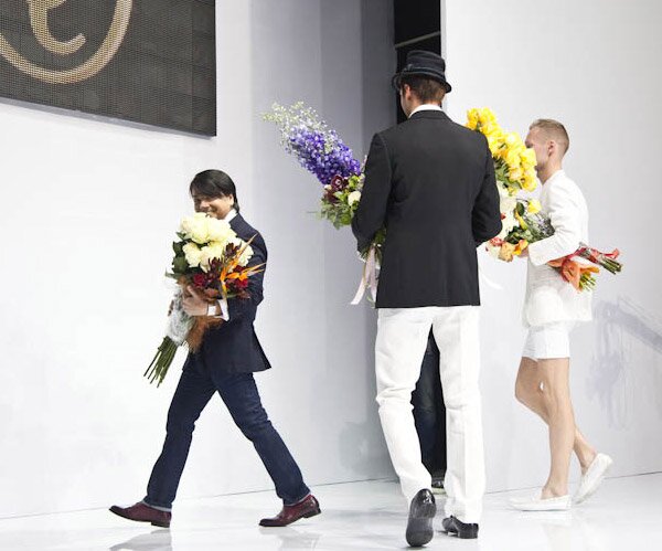 В финале показа кутюрье Валентин Юдашкин и модели в его изысканных нарядах приветствовали новый автомобиль Volvo в Москве. Атмосферу праздничности дополнительно подчеркнул салют конфетти.