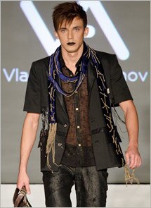 В рамках 22-го «Дефиле на Неве» Владислав Аксенов, мастер эпатажной мужской одежды, показал коллекцию «Black 4 people»: преимущественно черные, с добавлением зеленого, фиолетового, серого, синего и пурпурного прозрачные блузы, короткие шорты с узорами, рубашки с «рваными» рукавами, блестящие брюки. Дизайнер остается верным своим нестандартным, иногда шокирующим взглядам на мужскую моду.