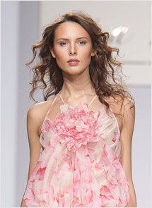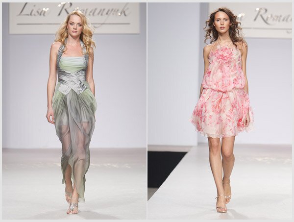 Так появились сначала маленькие белые платья с отделкой в полоску или шнуром, переплетенным серебром или золотом. Далее возникли «адмиральские» жакеты со сверкающими пуговицами и пряжками. (Чтобы добавить женственности воинственному морскому металлу, Лиза Романюк добавила немного красного – это обувь, сумки, бижутерия и ярко-красные губы манекенщиц). Круиз на роскошной яхте предполагает и обязательные в морском деле белые брюки-клеш и удобные шортики для отдыха. Логично вплетаясь в классическую «морскую» колористику, многие вещи новой коллекции Дома моды «ВЕМИНА» расписаны цветами. Роскошные шелковые платья со струящимися шифоновыми подолами украшены нежными акварелями из будто бы размытых крупных бутонов, на органзе и кружеве проступают восхитительные букеты, и все шелка без исключения напоминают холсты знаменитого мастера. Во всем этом великолепии можно смело высаживаться где-нибудь в Портофино или Сен-Тропе, где ожидаемым итогом произведенного фурора станет марш Мендельсона. А тут уж не обойтись без свадебного платья от Lisa Romanyuk - складки из эксклюзивной органзы с серебряным напылением буквально «вылеплены» руками, полупрозрачный серебристый шифон будоражит воображение, а гофрированная отделка как воздух окутывает необыкновенное подвенечное творение.