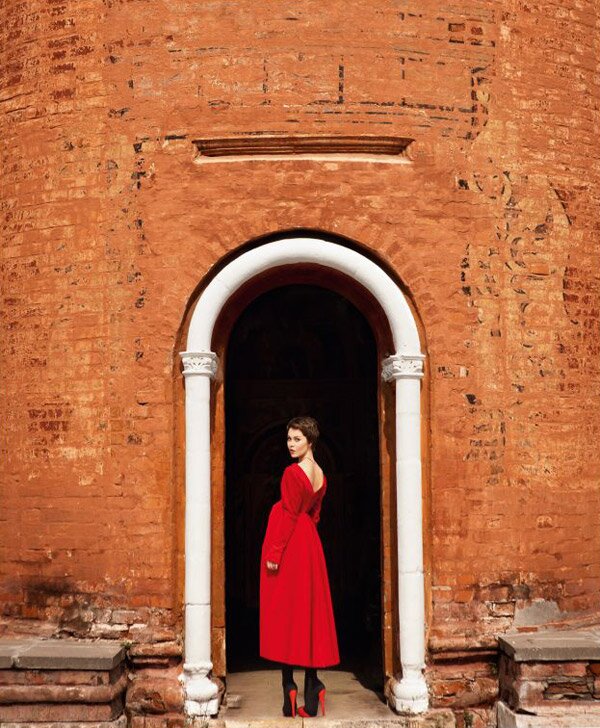 «Сейчас надо есть вишню», — тихо, но четко произносит она в пространство и кладет ягоду в рот. Тонкие пальцы, пухлые губы, на плечи накинута вязаная меланжевая кофта — от потенциального сквозняка. Ульяна Сергеенко готовится к съемке. Она в кресле визажиста: внимательно смотрит на себя в зеркало. На столике десятки кисточек и серебристые «гильзы» губной помады. Осенняя палитра, густые ягодные оттенки и тарелка спелой вишни — это идеальный натюрморт. Съемочная группа в полной боевой готовности, платья нового сезона верно ждут заветного часа.