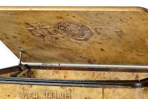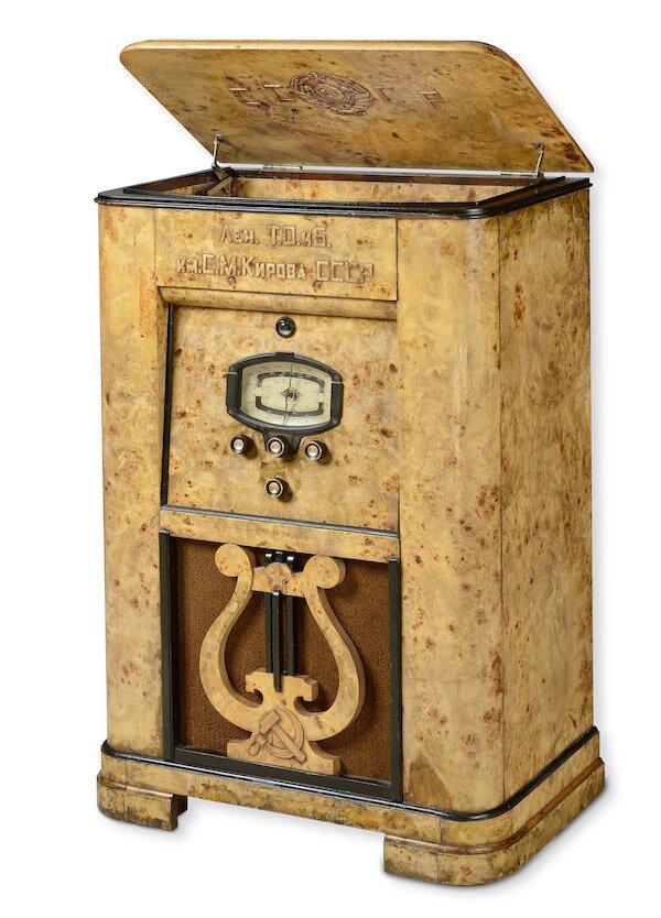 Мебель сталинского ампира представлена на выставке креслом-трансформером и радиолой, изготовленными по заказу ленинградского Театра оперы и балета им. С.М. Кирова (Мариинского) в качестве подарка Председателю Верховного Совета СССР М.И. Калинину.