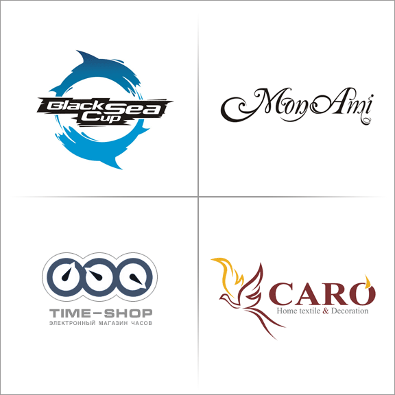 1. Логотип открытого чемпионата России по виндсерфингу и кайтсерфингу; логотип VIP-салона свадебной и вечерней моды; логотип электронного магазина часов; логотип компании Caro